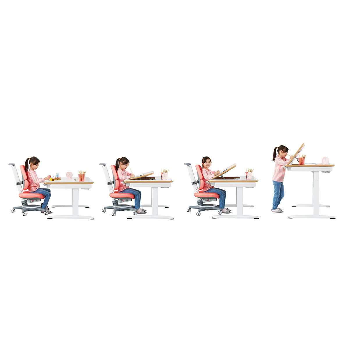 Кроме того, регулировка высоты обеспечивает возможность работать стоя. Это снижает нагрузку на позвоночник и разгружает мышцы, что положительно сказывается на формировании здоровой осанки и служит профилактикой сколиоза.